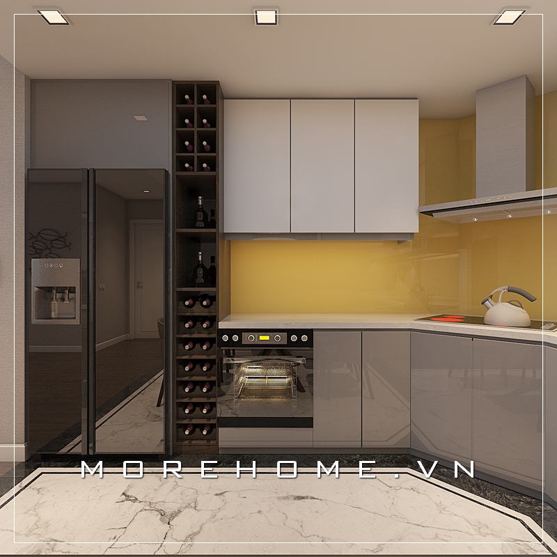 Thiết kế nội thất phòng bếp chung cư phong cách hiện đại, trẻ trung