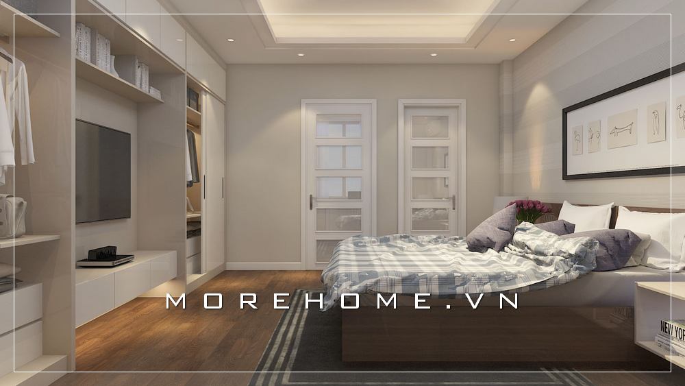 Thiết kế giường ngủ chung cư gỗ công nghiệp phong cách hiện đại