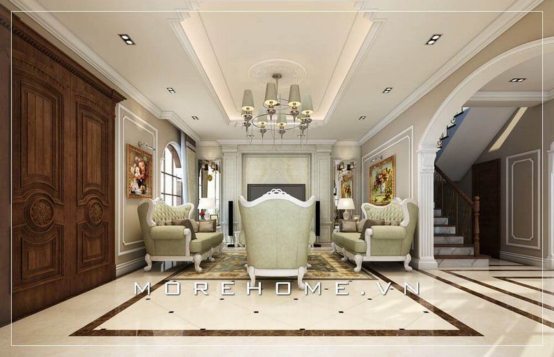 Thiết kế nội thất phòng khách sang trọng và đẳng cấp là những gì Morehome đã mang đến cho gia chủ tại biệt thự Hải Phòng.