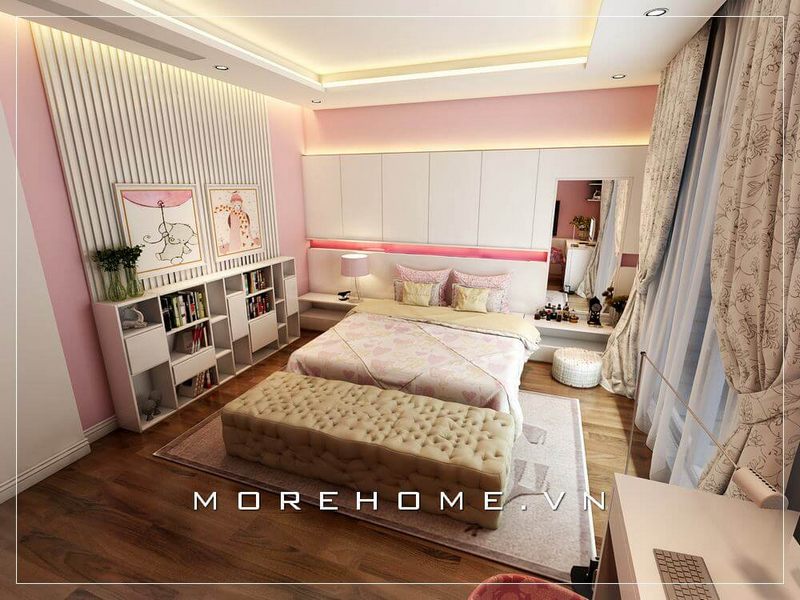 Mẫu thết kế nội thất phòng ngủ con gái đẹp, hiện đại mà không kém phần tiện nghi