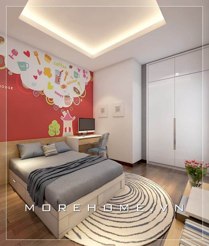 Nội thất phòng ngủ hiện đại, trẻ trung, cách bố trí hợp lí nội thất tạo độ rộng thoáng hơn cho căn phòng ngủ trẻ em nhỏ