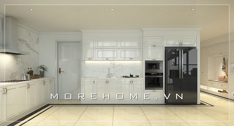 Thiết kế tủ bếp Hải Phòng tân cổ điển với ích thước nhỏ gọn phù hợp với mọi căn hộ chung cư diện tích nhỏ