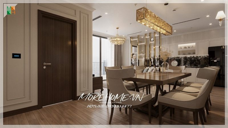 Mẫu cửa gỗ công nghiệp ấn tượng với tone màu nâu chủ đạo, tạo nên vẻ ấm cúng và sang trọng cho căn hộ chung cư
