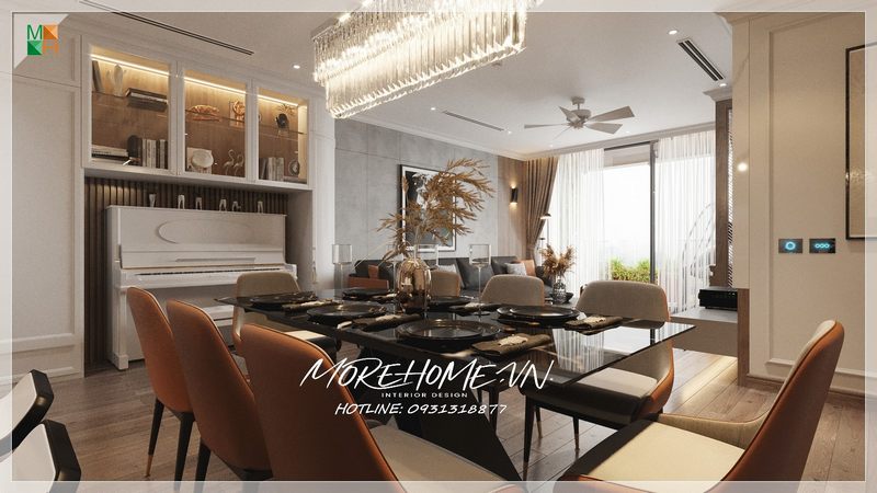 Mẫu thiết kế phòng ăn chung cư Hoàng Quốc Việt hiện đại với cách bố trí nội thất hợp lí, tinh tế