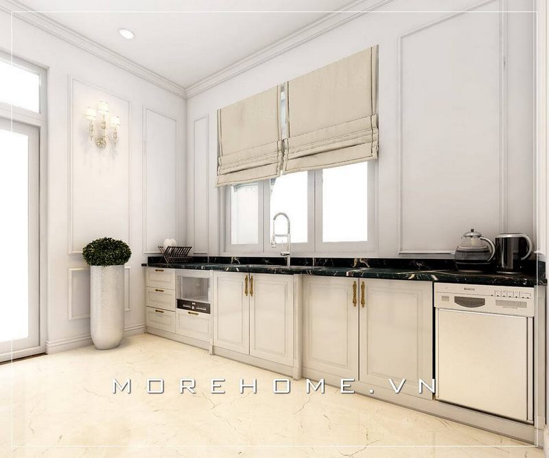 Thiết kế nội thất phòng bếp chung cư ấn tượng và sang trọng với lối thiết kế tân cổ điển nhẹ nhàng