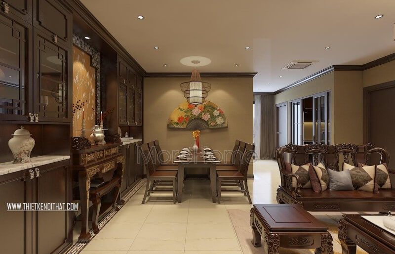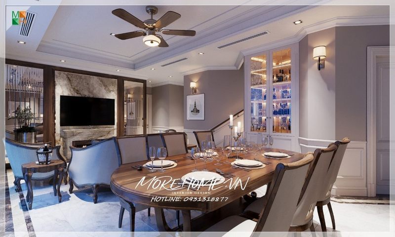 Thiết kế nội thất phòng ăn chung cư phong cách tân cổ điển