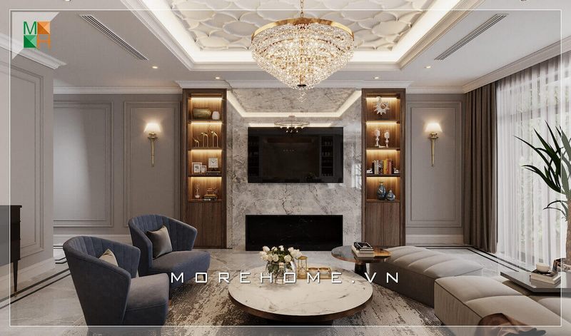 Thiết kế nội thất phòng khách chung cư phong cách tân cổ điển