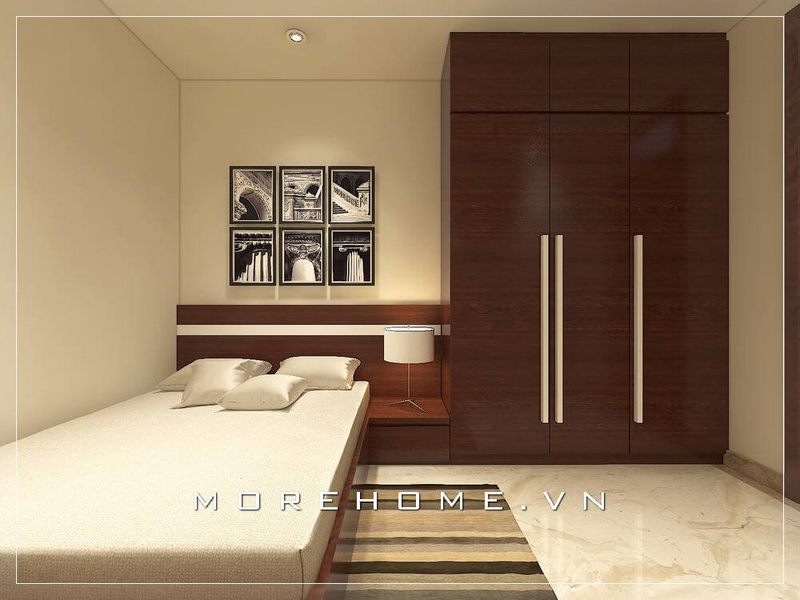Tủ quần áo gỗ công nghiệp màu nâu trầm gợi cảm giác ấm cúng mà không kém phần sinh động