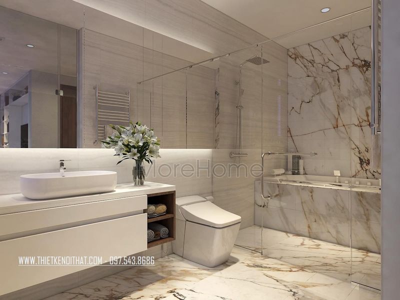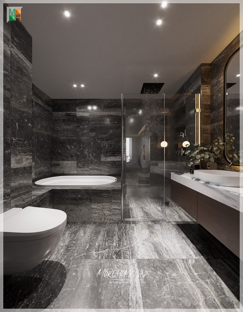 Phòng tắm thiết kế không gian và nội thất với phong cách hiện đại đáp ứng đầy đủ nhu cầu sử dụng của gia chủ.