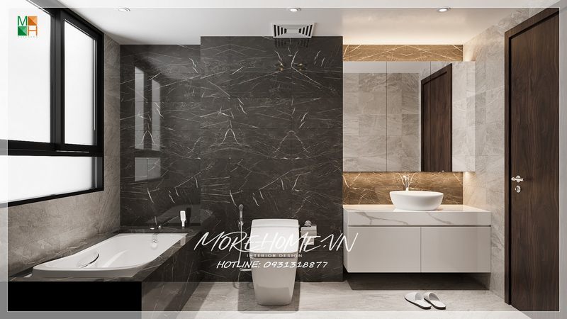 Phòng tắm nhà phố, biệt thự thiết kế có bồn tắm mang lại sự thư giãn tận hưởng cho gia chủ và không gian tiện nghi sang trọng và đẳng cấp.