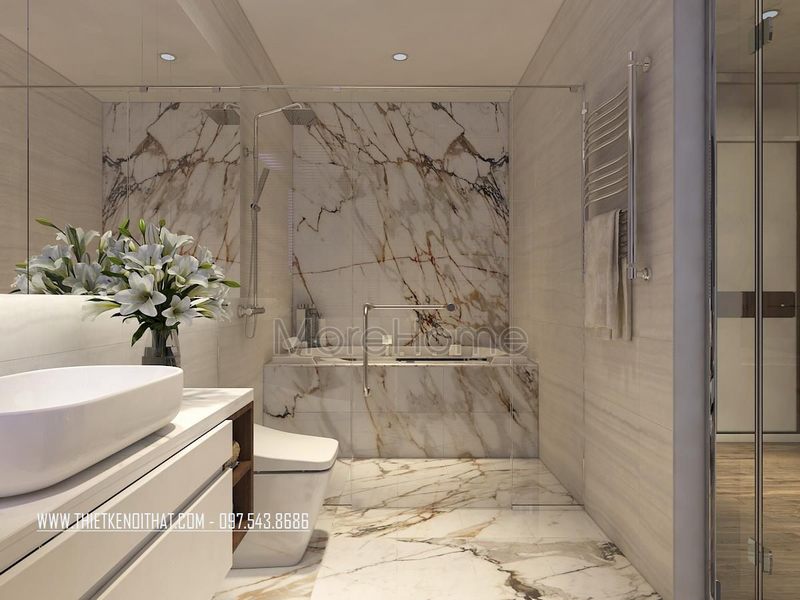 Mê mẫn với thiết kế phòng tắm sang trọng - lựa chọn chất liệu đá ốp lát tự nhiên đẹp mắt.