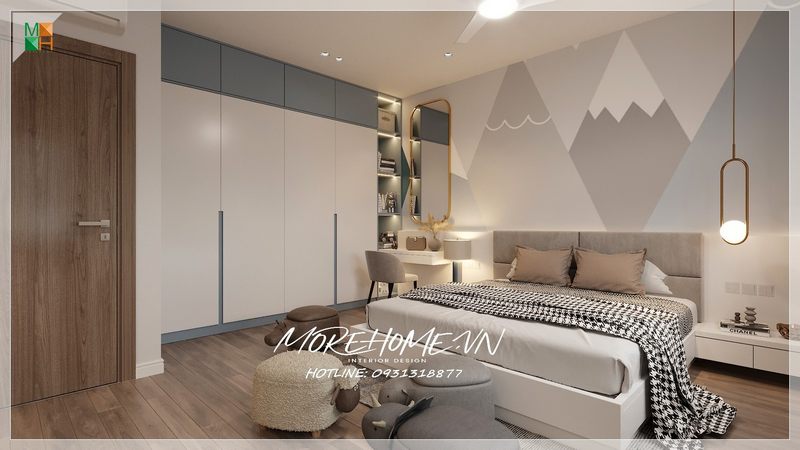 Khiến cho không gian phòng ngủ không bị nhàm chán lựa chọn tranh dán tường với nhiều sắc màu nhã nhặn pha trộn tạo nên sự sinh động đáng yêu cho căn phòng