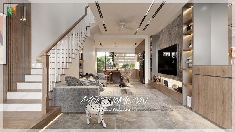 Cầu thang gỗ hiện đại là con đường đi chính trong ngôi nhà.