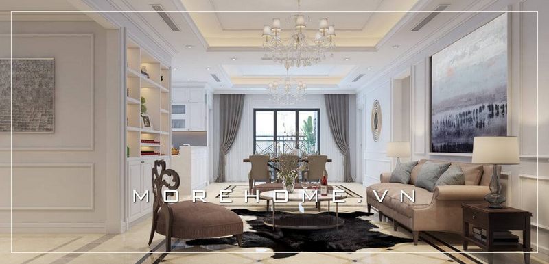 Một mẫu thiết kế nội thất phòng khách có phong cách tân cổ điển cao cấp, sang trọng được áp dụng cho các căn hộ, biệt thự, nhà phố.