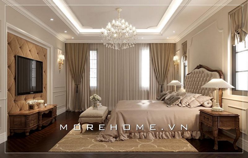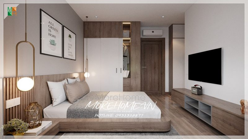 Phòng ngủ Master được trang bị nội thất với chất liệu gỗ óc chó nhập khẩu cao cấp, tạo nên sự ấn tượng mạnh mẽ.